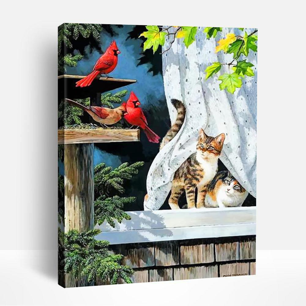 Cardinal and Kittens | Paint By Numbers