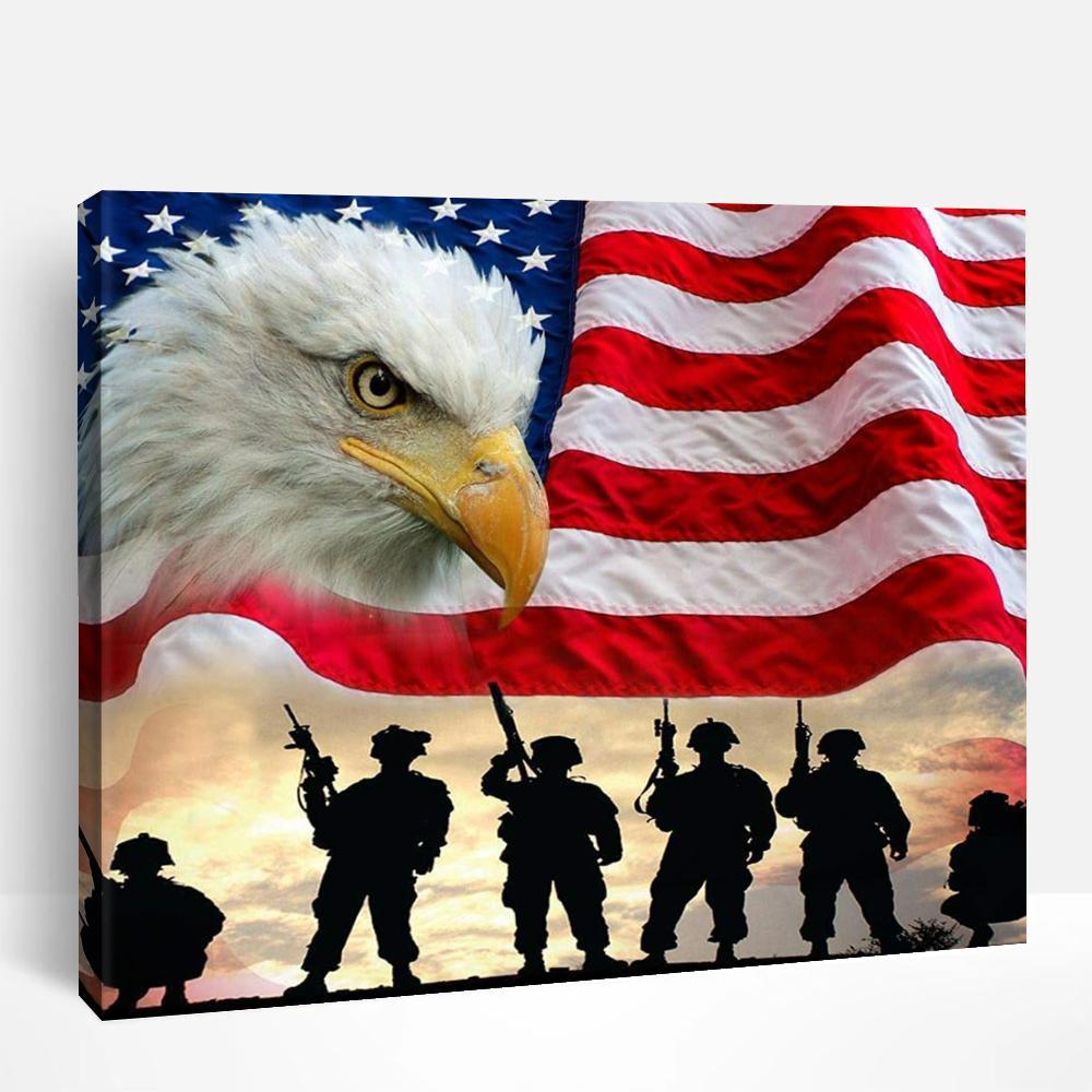 American Flag, Eagle and Soldiers | Paint By Numbers