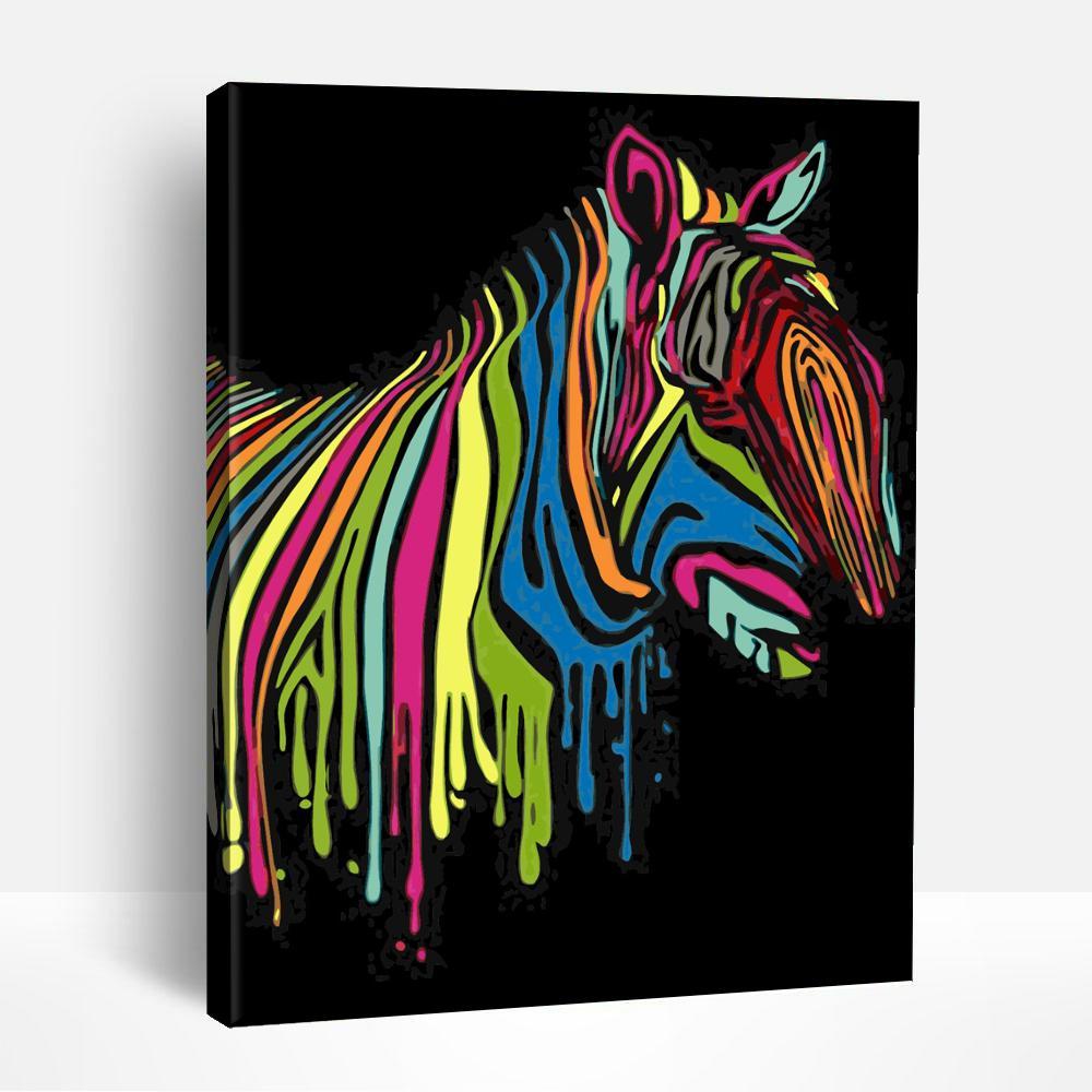 Colorful Zebra on Black | Paint By Numbers